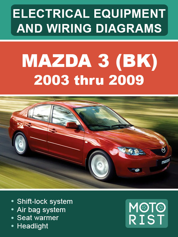 Электрооборудование и цветные электросхемы Mazda 3 (BK) с 2003 по 2009 год в формате PDF (на английском языке)