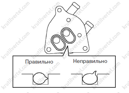 Проверить и убедиться в том, что уплотнительные кольца установлены в выборки охладителя должным образом.