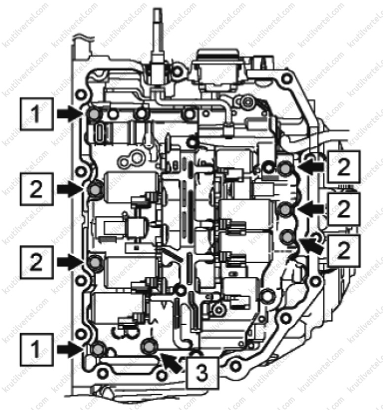 При установке масляного поддона следить за жгутом электропроводки главного распределителя, чтобы исключить попадание провода между масляным поддоном и корпусом АКП.