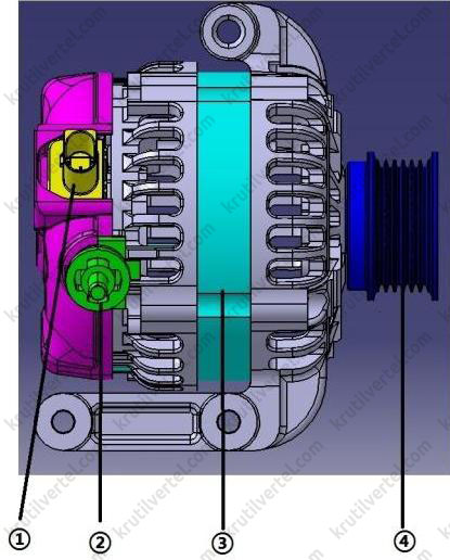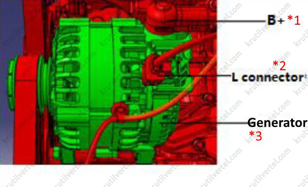 - Разъем жгута проводов генератора (разъем LIN).
