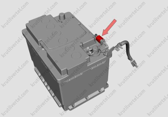 - Гайка крепления отрицательного провода аккумуляторной батареи.