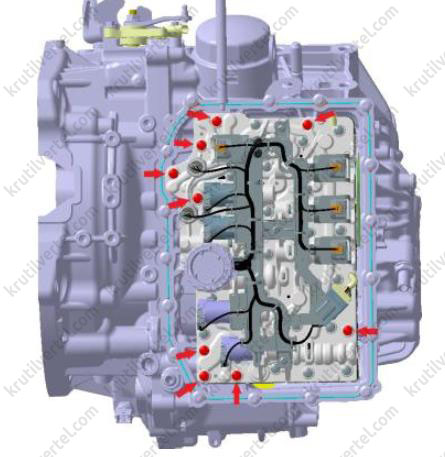 При установке коробки передач не повредите соседние детали или основную конструкцию.