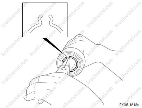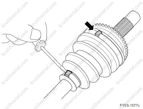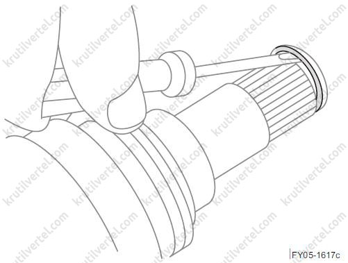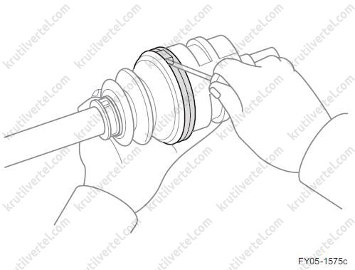 1. Отверткой ослабьте хомут пылезащитного чехла шарикового шарнира равных угловых скоростей.