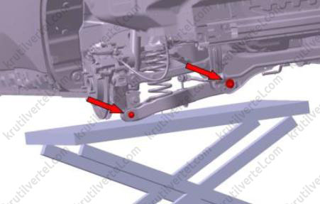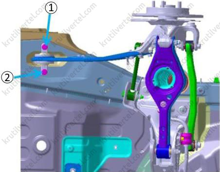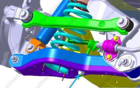 - Задний поперечный рычаг управления.