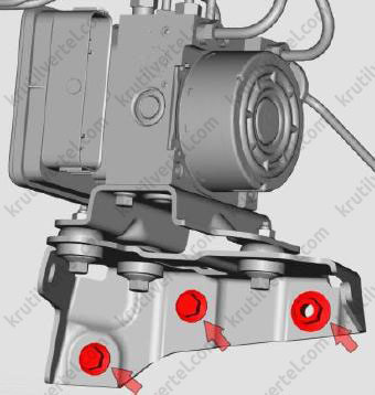 Между электронно-гидравлическим блоком управления и монтажным кронштейном установлен резиновый виброизолятор, который предотвращает передачу вибраций от кузова автомобиля на электронно-гидравлический блок управления. Электронно-гидравлический блок управления не подлежит ремонту и заменяется только в сборе.