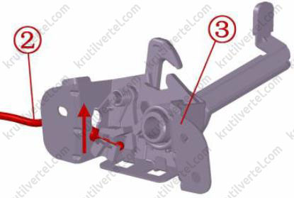 2. Отрегулируйте высоту капота вращением резиновых упоров (2) по часовой стрелке или против часовой стрелки.