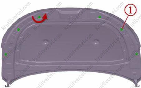 - Во время регулировки следует избегать повреждения лакокрасочного покрытия на петлях капота. Если произошло повреждение, восстановите лакокрасочное покрытие.