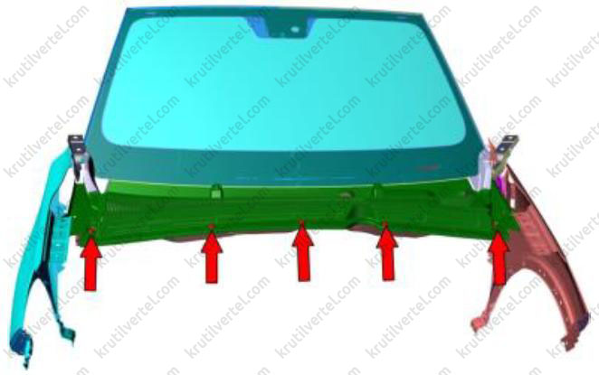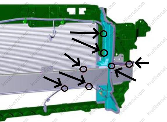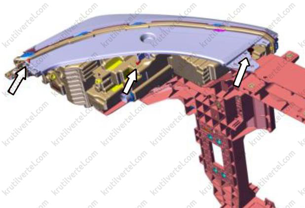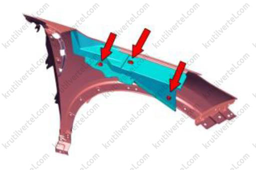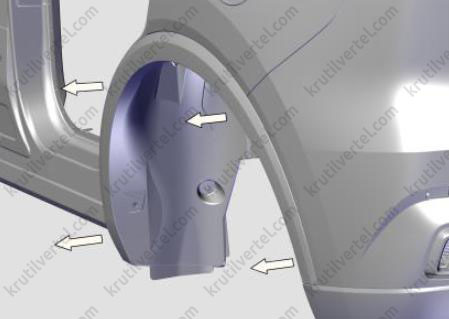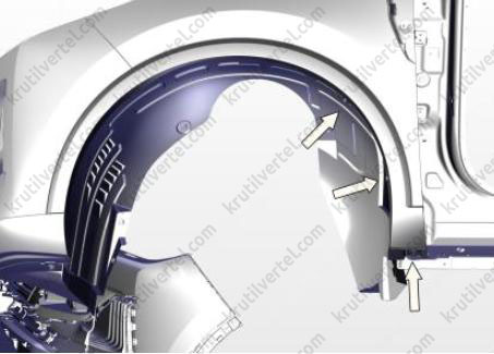 1. С помощью отвертки отверните три крестообразных винта на стыке облицовочной панели передней колесной арки и крыла.