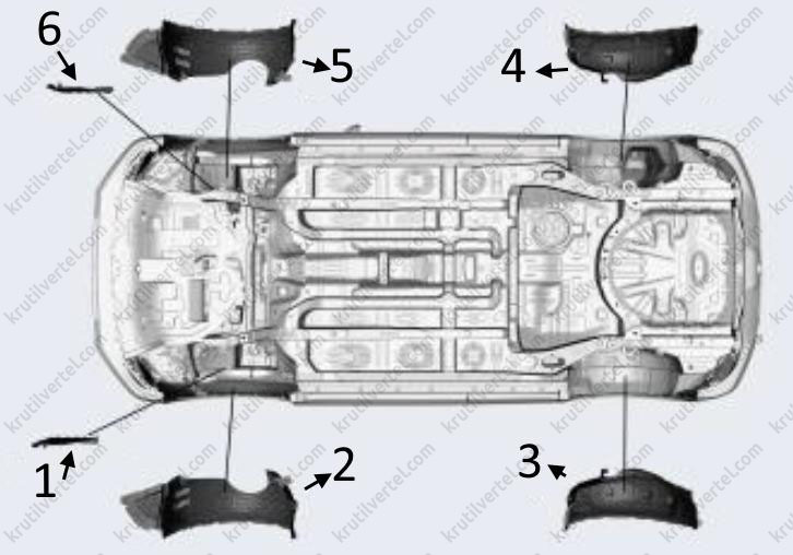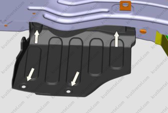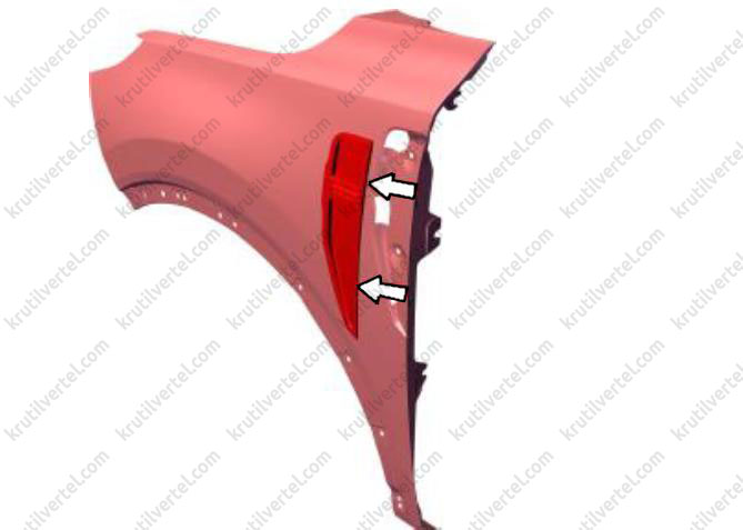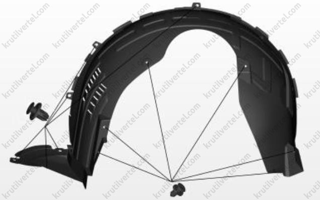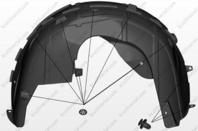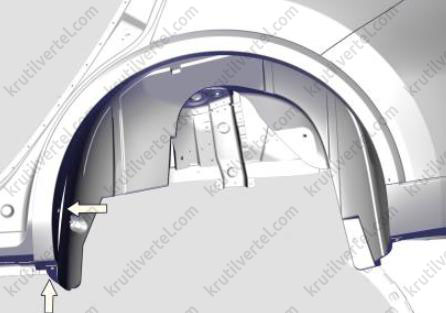 2. Вручную, без применения какого-либо инструмента, снимите облицовочную панель передней колесной арки в направлении стрелок.