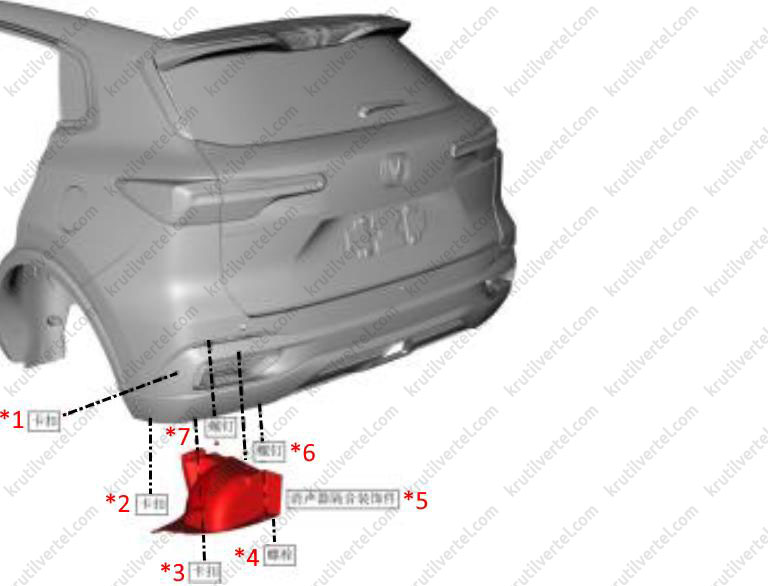 1. Снимите/установите стандартные детали последовательно (1→6) в соответствии со следующим рисунком.