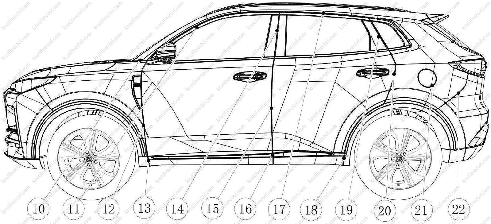 | 21 | Лючок топливозаправочной горловины относительно боковой стенки | 2,2 – 3,8 мм. P≤0,8 мм. | -0,5 – 1,0 мм. P≤1,0 мм. |