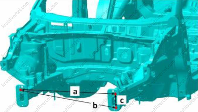 | А-а | Установочное отверстие передней секции боковой балки моторного отсека | Ø20 мм |