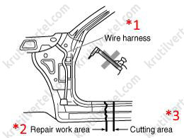 2. При выполнении ремонта кузова с использованием открытого пламени следует удалять вспененный звукоизолирующий материал в ремонтируемой детали. При повторной установке звукоизолирующих материалов не допускайте вдыхания пыли — это вредно для здоровья.