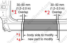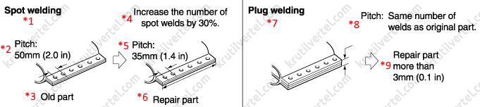 7. Герметики используются для предотвращения попадания воды и пыли в автомобиль, также они обладает антикоррозийным действием. Изначально стыки отчетливо видны и должны герметизироваться повторно для калибровки в случае повреждения. Швы недавно замененных панелей следует покрывать герметиком повторно. Используемый герметик должен оставаться гибким после отверждения и нанесения лакокрасочного покрытия. Следует использовать заправку высокой консистенции для открытых швов с герметиком. Следуйте инструкциям, прилагающимся к выбранному материалу.
