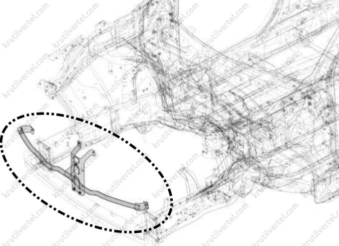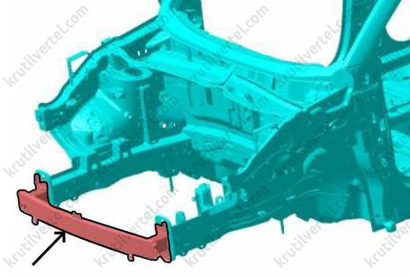 Установочные отвертстия балки переднего бампера: