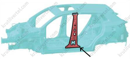 | В-b | Точка пересечения поперечины и листового металла боковой стенки | / |