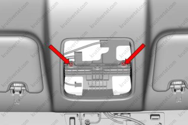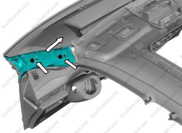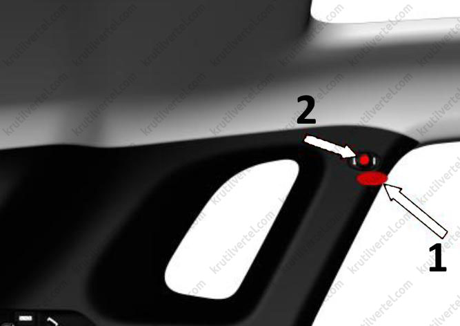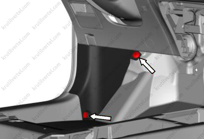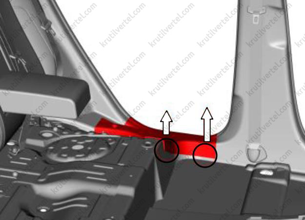 2. С помощью крестовой отвертки отверните два нажимных винта (стрелки) декоративной накладки порога двери багажного отделения.