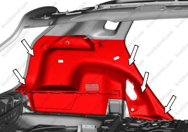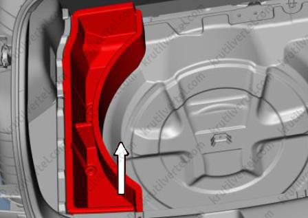 1. Снимите коврик багажного отделения (стрелка).