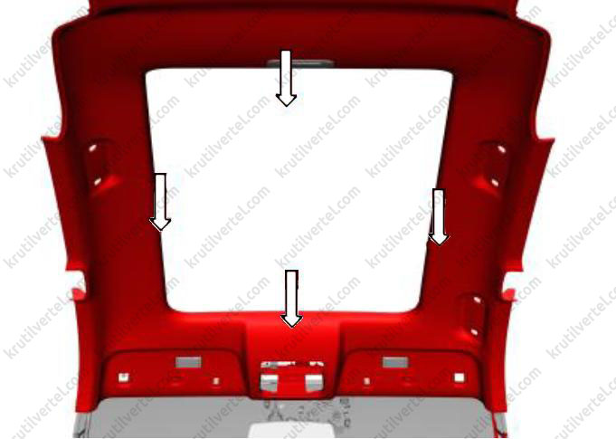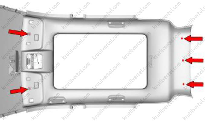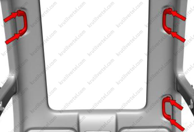 - Если металлический V-образный зажим остался в отверстии листового металла, то перед установкой его необходимо удалить из листового металла и установить на декоративную накладку порога передней двери.