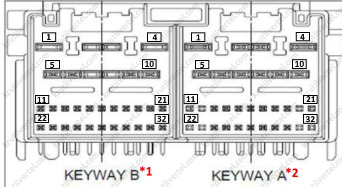 | A31 | MIC2_N | <0,1 А | <0,3 А | Вход | Сигнал микрофона 2 | Аудиосигнал | 0,8 – 8 В (Vpp) | Основной микрофон, рядом с водителем. Функция Bluetooth-телефонии и голосовая связь используют этот канал микрофона, а вывод имеет функцию шумоподавления. |