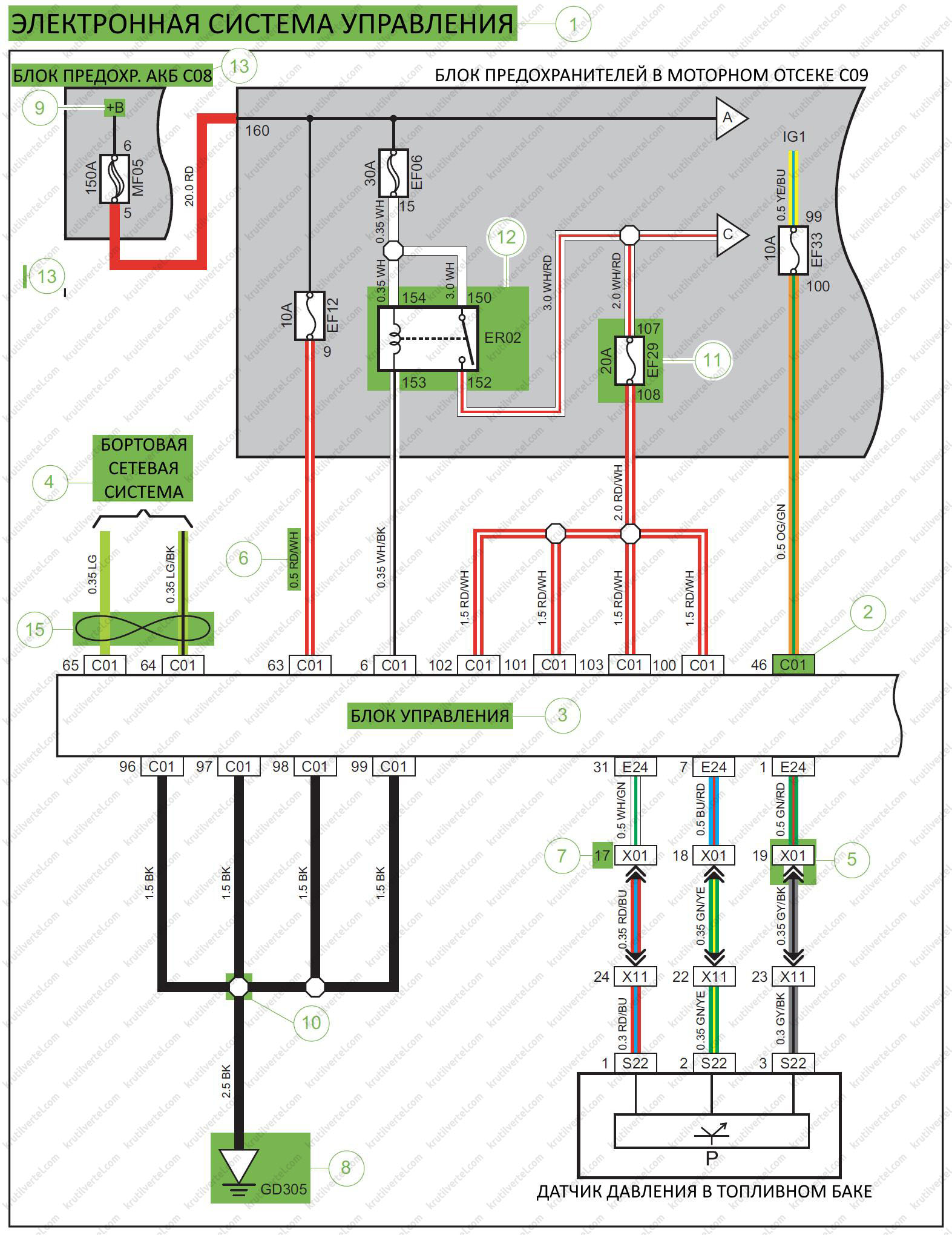 11. Описание электросхем, предохранителей и жгутов проводов