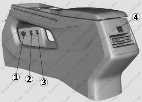 3. Розетка питания, USB-разъемы и беспроводная зарядка