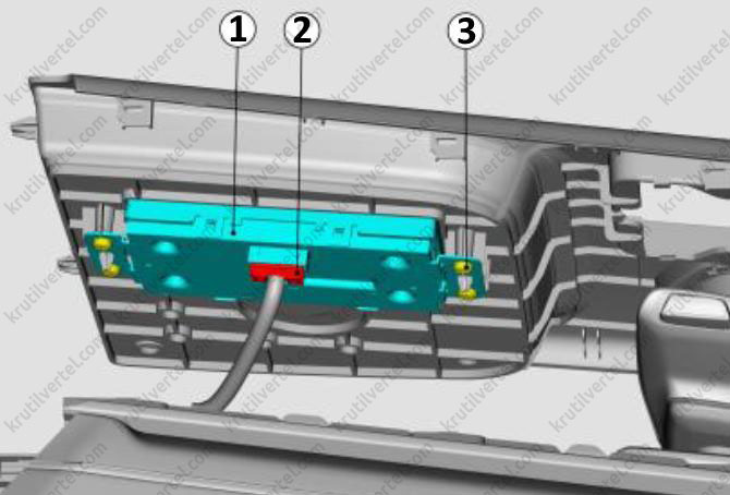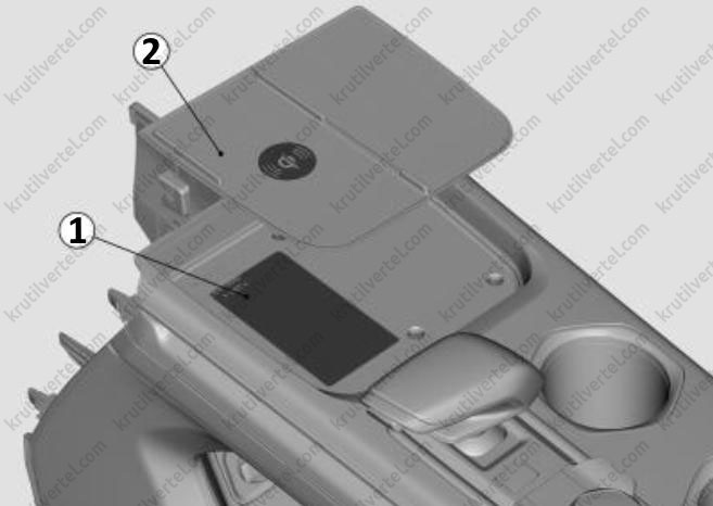 1. Модуль беспроводного зарядного устройства. 2. Вспомогательное вещевое отделение на напольной консоли.