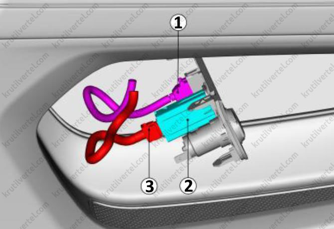 Данный автомобиль оснащен передним USB-интерфейсом, источником питания 12 В и беспроводной зарядкой (расположенные в передней части напольной консоли), а также задним USB-разъемом (расположенный в задней части напольной консоли). Источник питания 12 В получает питание от аккумуляторной батареи, что обеспечивает выходную мощность на разъемах бортового оборудования.