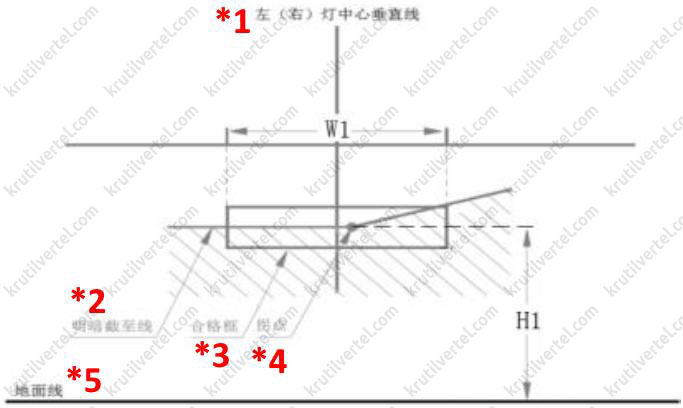| Высота H1 точки перегиба светотеневой границы ближнего света | 911 – 926 мм | 846 – 876 мм |