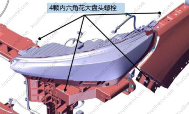 3. С помощью шестигранного ключа T30 отверните четыре болта крепления передней блок-фары.