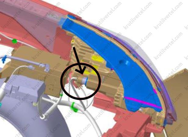 4. Отсоедините разъем жгута проводов передней блок-фары (стрелка), после чего снимите переднюю блок-фару в сборе.