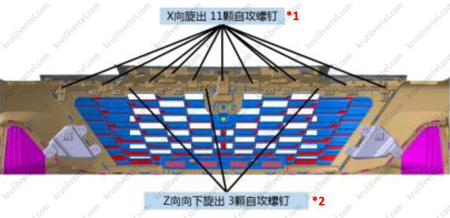 2. С помощью крестовой отвертки отверните 14 саморезов с крестообразным шлицем и цилиндрической головкой (11 из которых расположены сзади в направлении X, а три внизу в направлении Z).