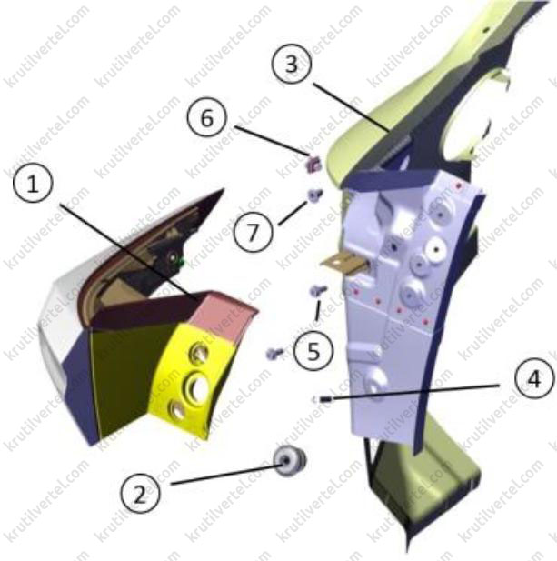 7. Установку производите в порядке, обратном снятию, но при этом учитывайте следующее: при установке заднего комбинированного фонаря I убедитесь в том, что задний комбинированный фонарь правильно стыкуется с дверью багажного отделения задним бампером. При необходимости отрегулируйте зазоры и несовпадения поверхностей по высоте.