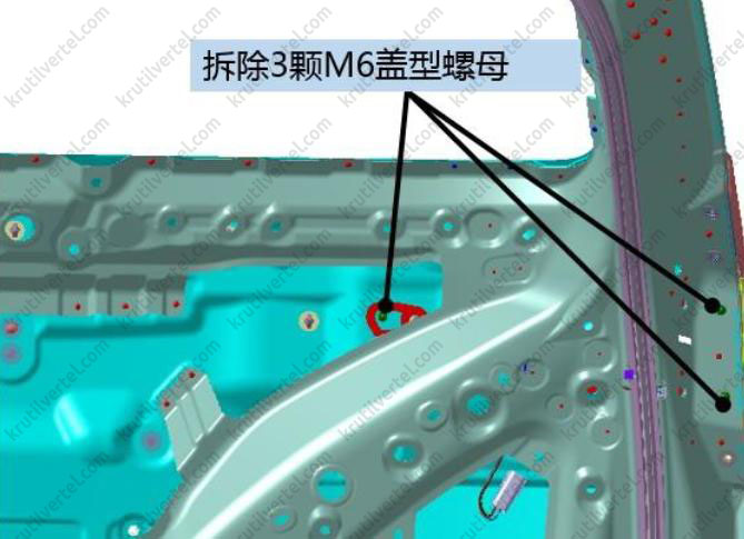 4. С помощью головки на 12 отверните три гайки крепления (М6) заднего комбинированного фонаря II.