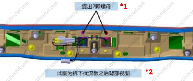 2. Отсоедините разъем жгута проводов, с помощью головки на 10 отверните две гайки крепления и затем снимите высокорасположенный стоп-сигнал в сборе.