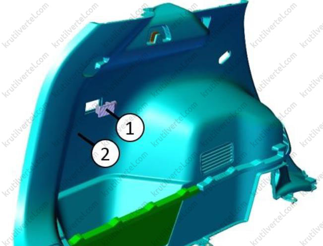 1. Лампа освещения багажного отделения. 2. Боковая облицовочная панель багажного отделения.