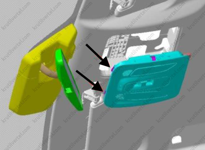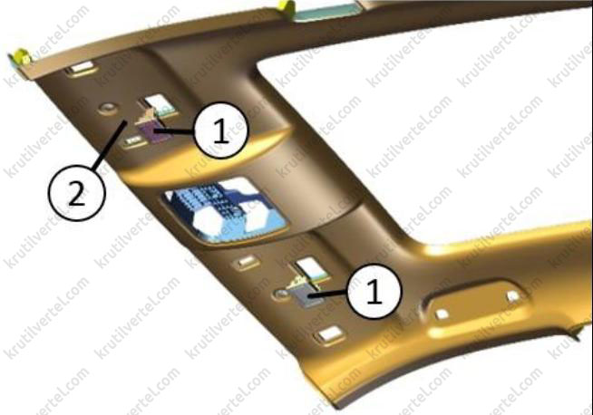 1. Лампы подсветки косметического зеркала. 2. Внутренняя облицовочная панель потолка.