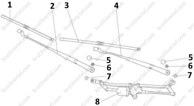 - Узел дополнительного рычага стеклоочистителя.