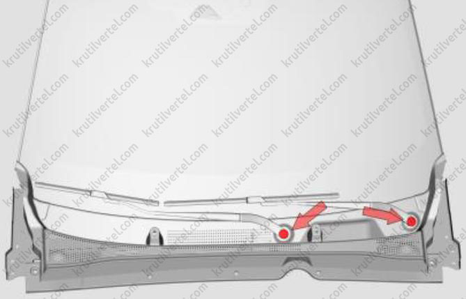 - Электродвигатель и механизм передних стеклоочистителей.