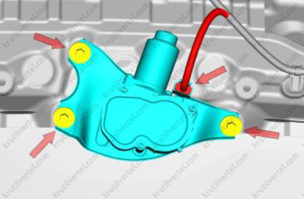 - Передняя крышка двигателя и цепь привода газораспределительного механизма