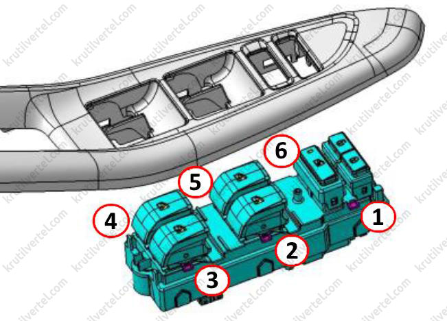 Переключатель стеклоподъемника с защитой от защемления водителя имеет два режима работы: опускание и подъем со стороны водителя. Первый режим — ручной подъем, второй режим — автоматический подъем. Остальные кнопки имеют только один режим работы и могут быть подняты или опущены только вручную (только для некоторых моделей).
