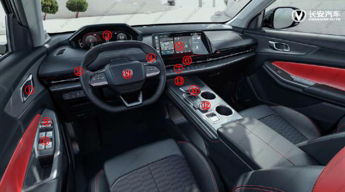 Приборная панель, органы управления и оборудование салона Changan CS55 PLUS / Uni-S с 2021 года
