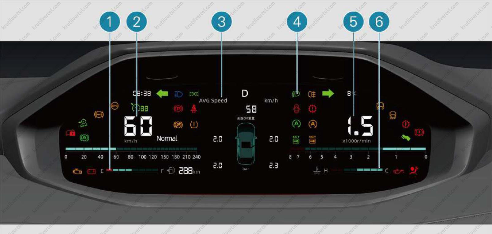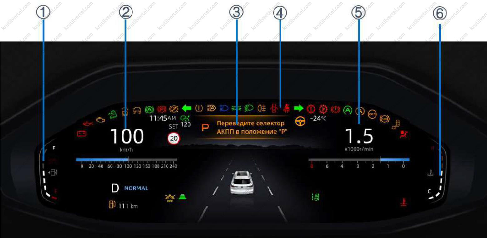 | 3. Информационный дисплей | Отображение различной информации о поездке, предупреждения и другая информация. |