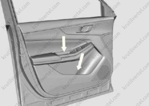 - Не располагайте хрупкие и колющие предметы в отделениях для хранения в обшивке дверей. Это увеличивает риск получения травм в результате несчастных случаев или аварии.