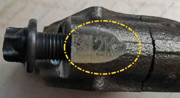 Сумма группового значения отверстия коренного подшипника картера + группового значения коренной шейки коленчатого вала + группового значения толщины вкладыша коренного подшипника равна 7. Например, первое коренное подшипниковое отверстие картера равно 2, первая коренная шейка коленчатого вала равна 3, а дополнительная группа вкладышей коренного подшипника равна 2. Второе коренное подшипниковое отверстие картера равно 1, вторая коренная шейка коленчатого вала равна 1, а дополнительная группа вкладышей коренного подшипника равна 5.