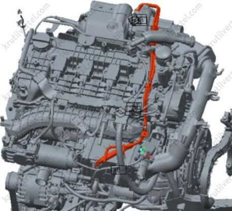 3. После снятия декоративного кожуха двигателя снимите катушки зажигания, масляный щуп, впускные и выпускные трубы турбокомпрессора, теплозащитный экран крышки головки блока цилиндров, перепускной патрубок и т. д.