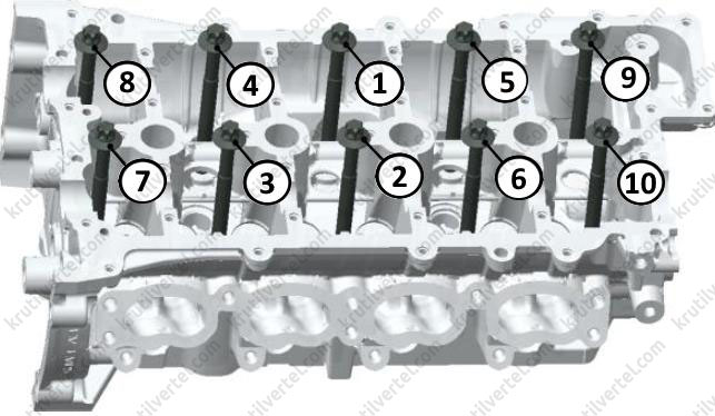 3. Установите крышку головки блока цилиндров и установите болты крепления на 1-2 витка резьбы.