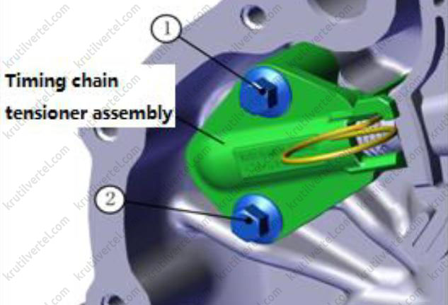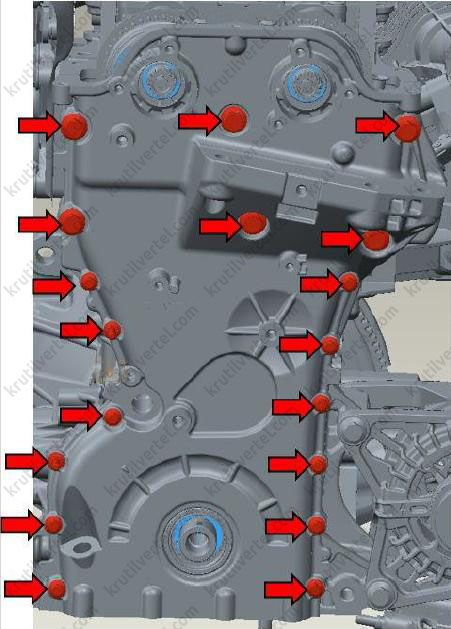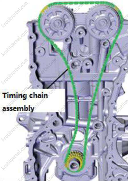 - Передняя крышка двигателя и цепь привода газораспределительного механизма
