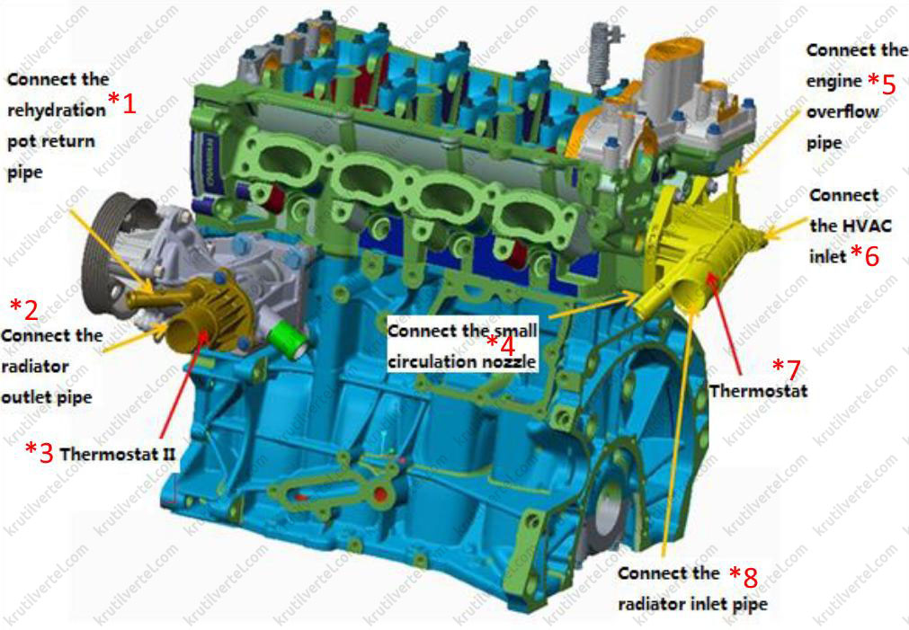 1. Проверьте на отсутствие отложений во выпускном канале термостата II. Если канал будет заблокирован, двигатель будет перегреваться.