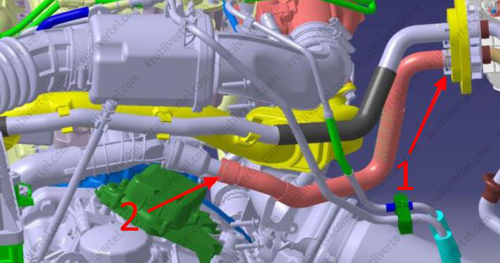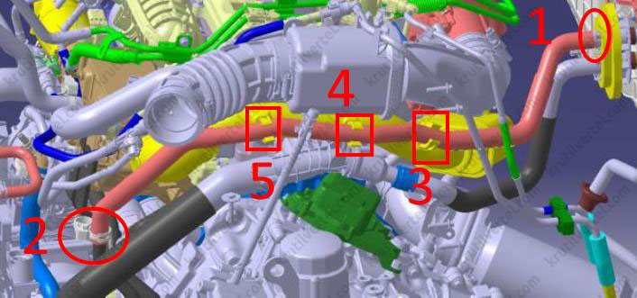 Замена подводящего/отводящего шлангов промежуточного охладителя наддувочного воздуха